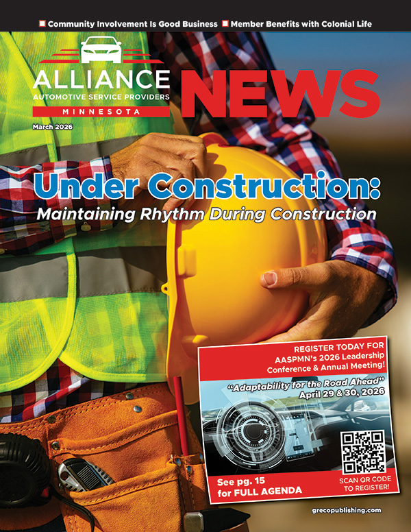 The Alliance of Automotive Service Providers of Minnesota (AASP-MN / “The Alliance”) is an association of independently-owned automotive service businesses and industry suppliers dedicated to improving the state’s automotive service industry and the success of its members. AASP-MN is the place that automotive service professionals turn to for the resources they need to manage and grow their business. Greco Publishing has produced AASP-MN News, the official print and digital publication of AASP-MN, since 2001!